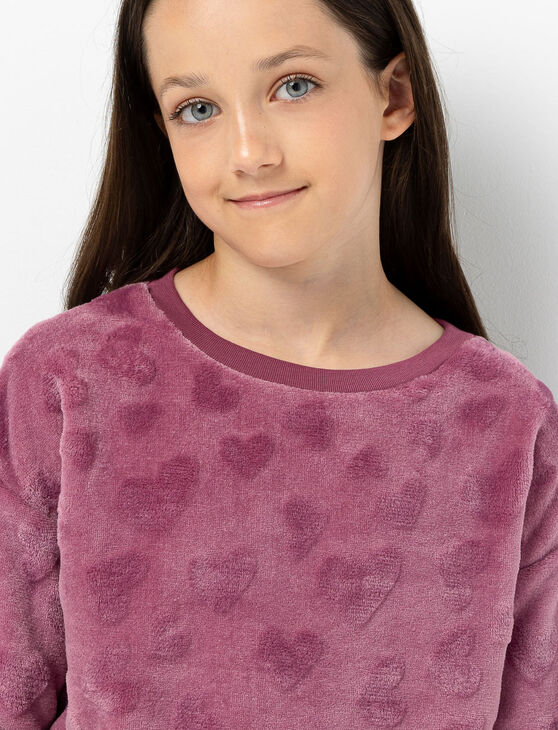 As soft as it is cute, this two-piece pajama set is perfect for your girl's cozy downtime. Made with plush fabric and textured details, it’s bound to become her favorite lounge companion.