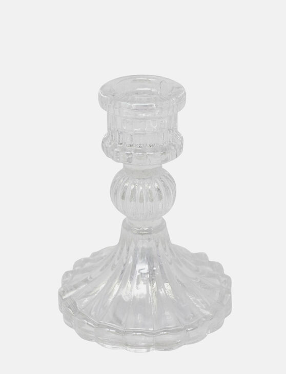 A clear glass candle holder with a timeless style. It brings a bright and elegant touch to your table or home décor.