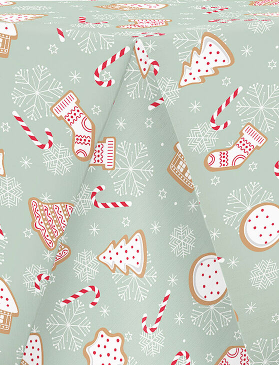 Practical and festive, this 60 x 84 in tablecloth with flannel backing protects your table while adding a joyful touch to your meals.