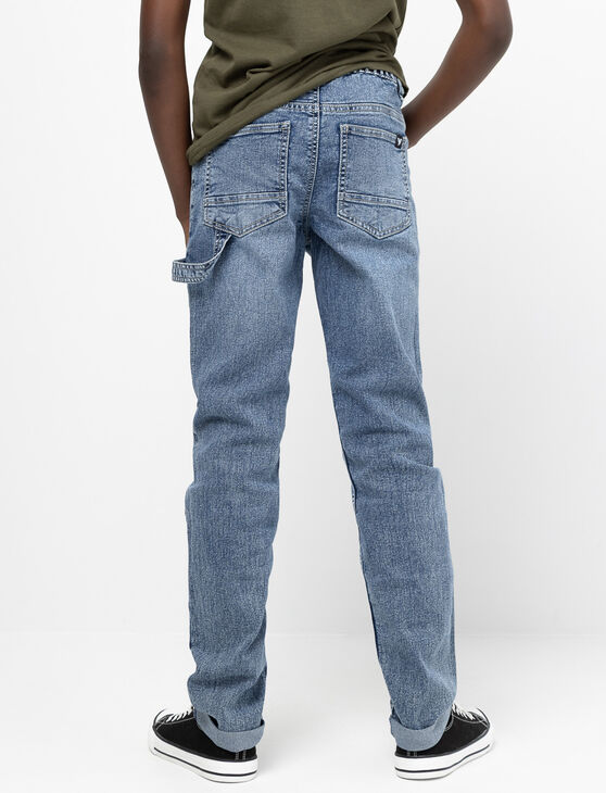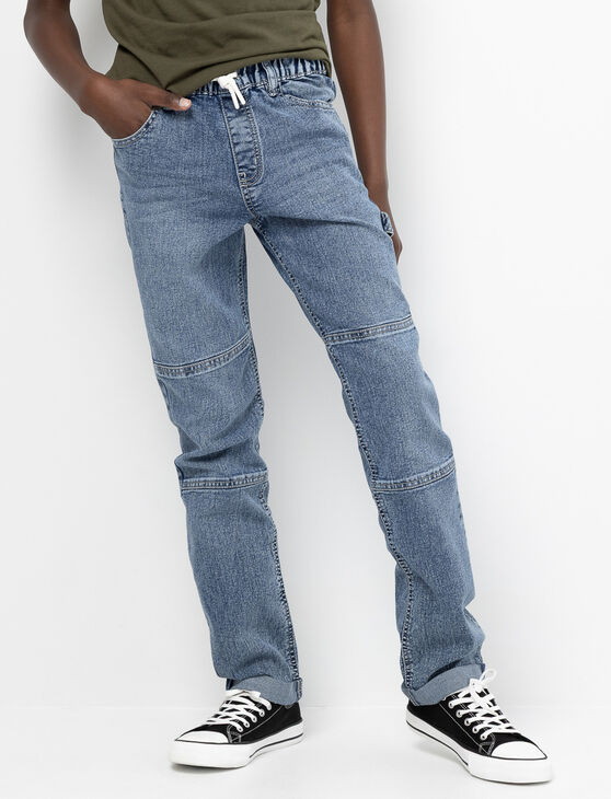 This elastic-waist jeans blends style and comfort to follow teens through all their activities. With visible seam lines, a relaxed fit, and cuffed ankles, it's the perfect piece for a trendy and functional look.