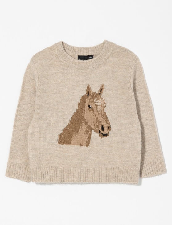 Knit Sweater with Horse Print - Baby Girl