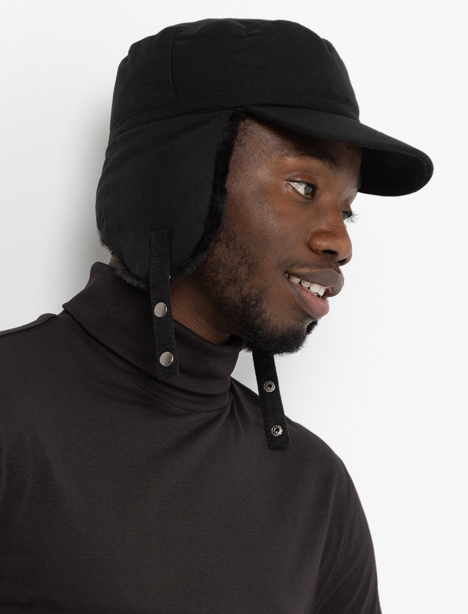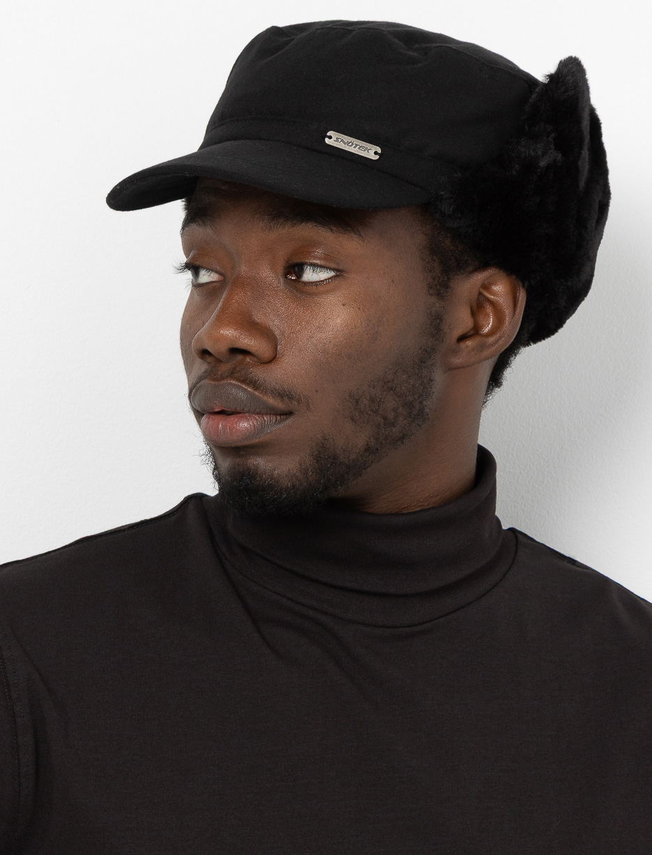 A practical cap that keeps you warm with faux fur-lined ear flaps and a snap strap for a secure fit.
