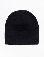 Stay cozy and warm with this soft knit beanie. Its striped design adds a modern touch to your winter outfits.