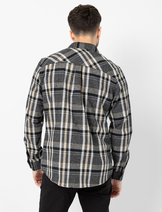 This plaid flannel shirt delivers timeless style with a comfortable fit. A practical essential that pairs easily with both casual and dressier outfits.