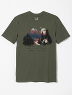 Show your adventurous spirit with this t-shirt featuring a wild landscape at sunset, perfect for completing your outdoors-inspired style.