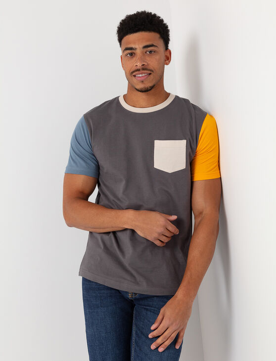 This colour block t-shirt stands out effortlessly, an easy everyday piece with a bold touch of style.