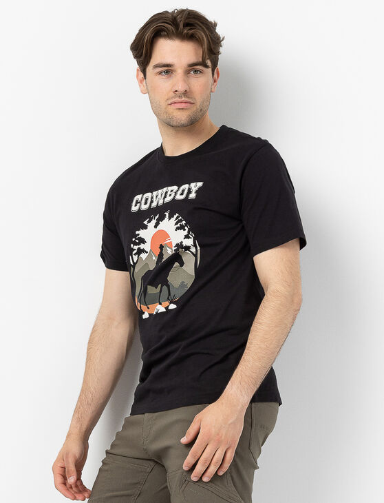 A printed t-shirt with a western vibe. Featuring bold designs inspired by the wide-open landscapes of Texas, perfect for adding rugged charm to any casual look.