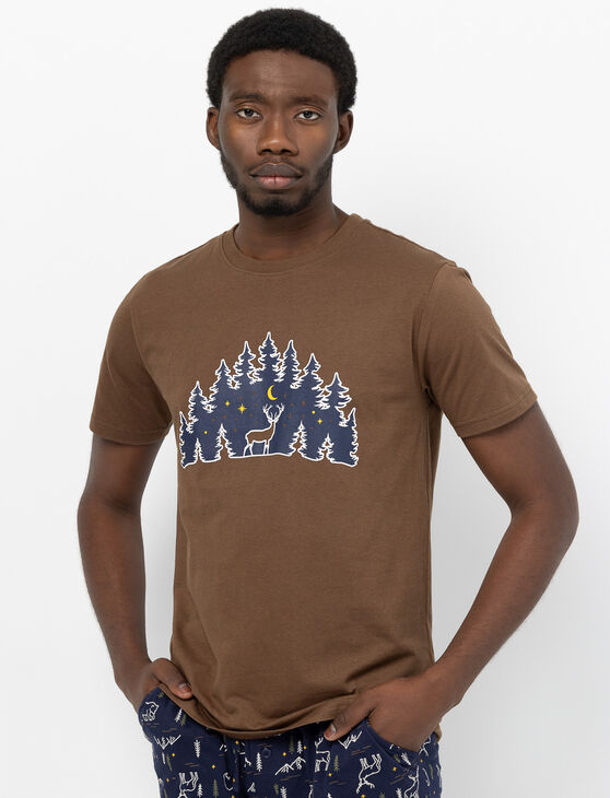 Relax in style with this organic cotton short-sleeve pajama T-shirt. Featuring a forest print and a classic crew neck, it offers natural comfort and an easygoing look perfect for lounging.