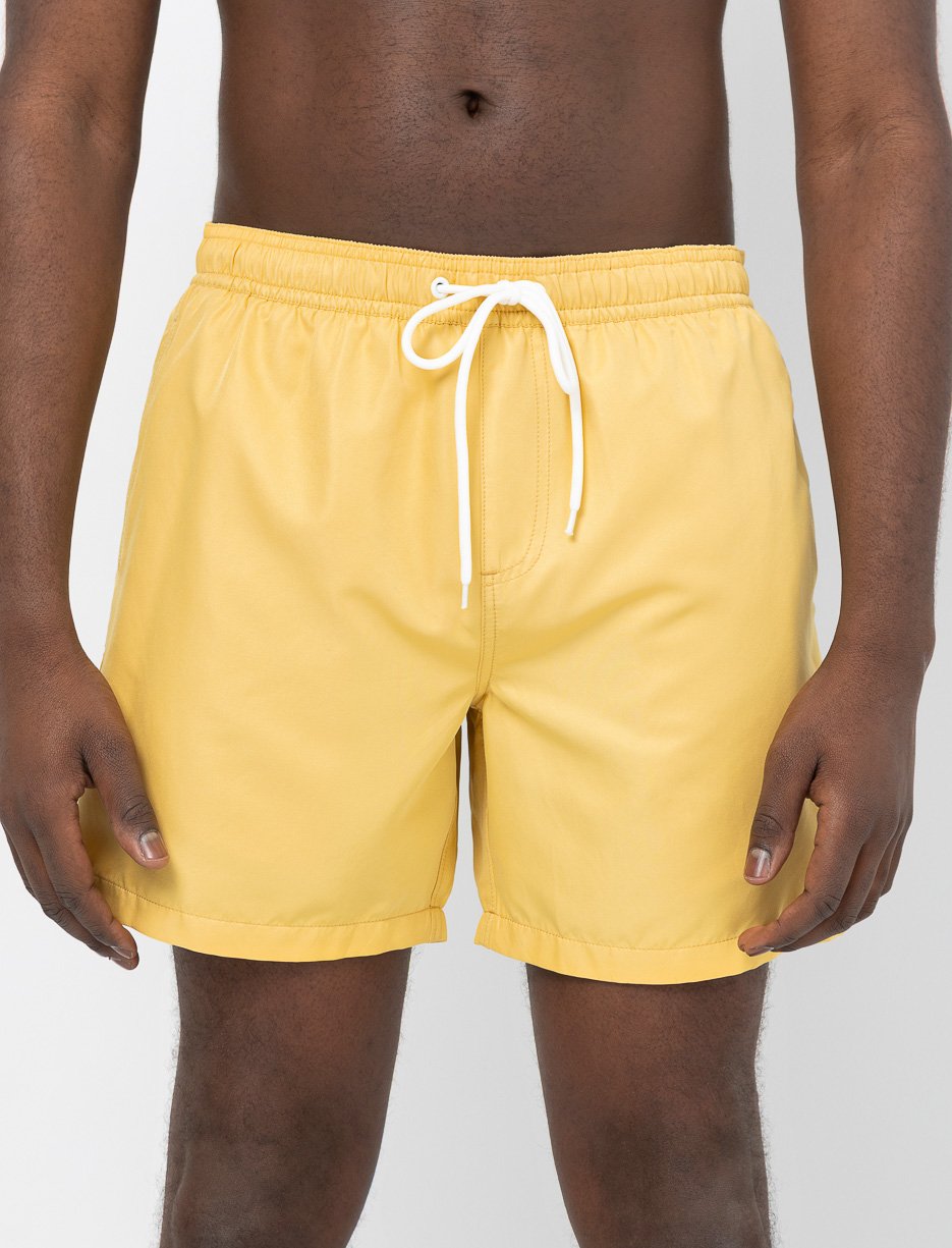 This solid swim short dries quickly and allows easy movement. An elastic waistband, adjustable drawstring, and practical pockets complete the look.
