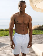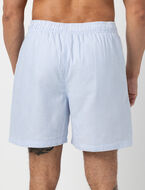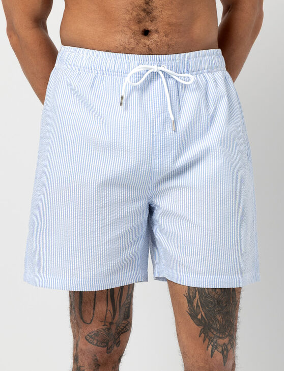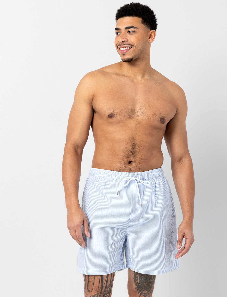 These striped boardshorts are perfect for sunny days. Designed with an elastic waistband and drawstring, they offer a comfortable fit, while pockets and a small side slit add everyday practicality for beach or pool wear.
