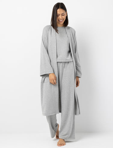 Wrap yourself in softness with this light and cozy bathrobe. Featuring an adjustable belt and handy pockets, it’s the perfect companion for your relaxing moments at home.
