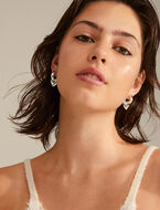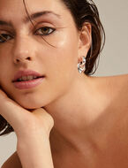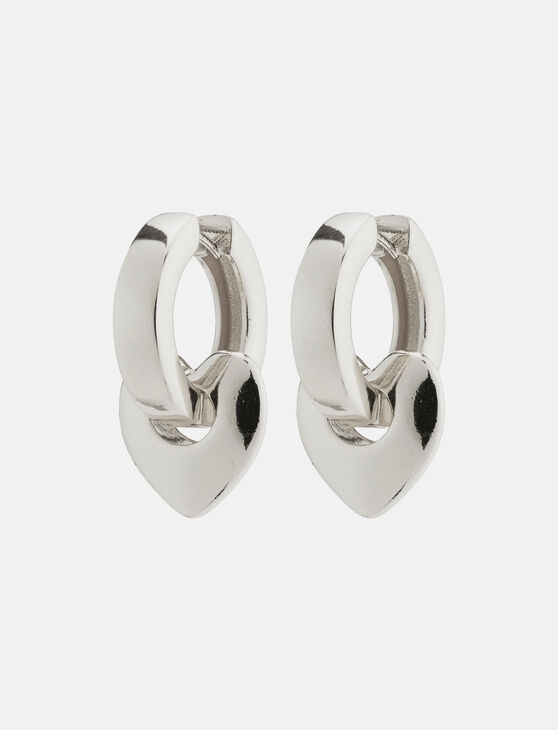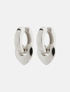Gold or silver plated earrings with removable heart pendants. Shiny large hoops with a click clasp, made with at least 75% recycled materials for a romantic yet modern style.