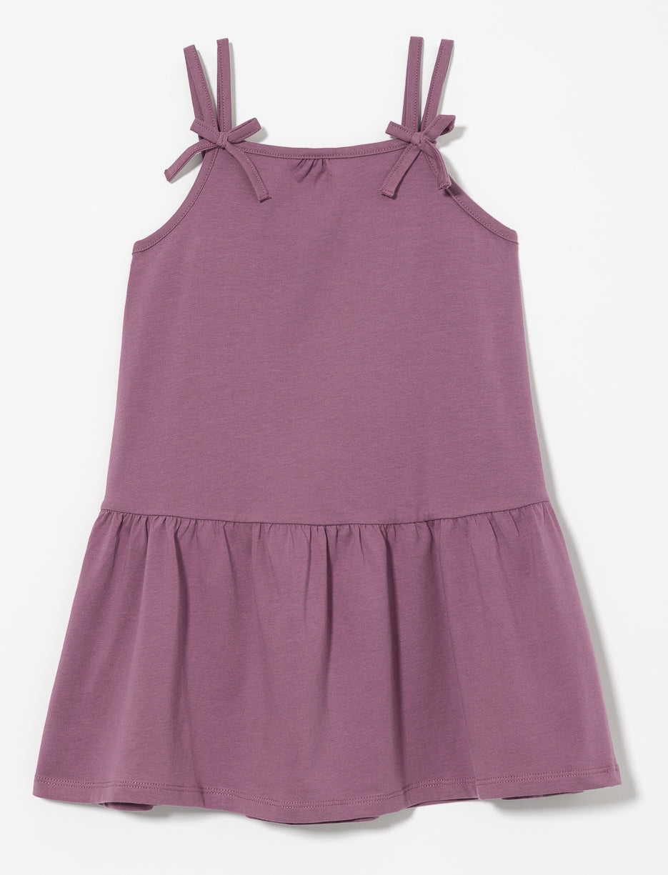 Lightweight and comfortable, this strappy dress is perfect for sunny days. The decorative bows on the shoulders and ruffled hem add a sweet and charming touch to your child’s outfit.