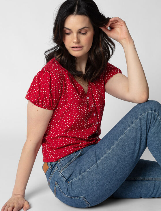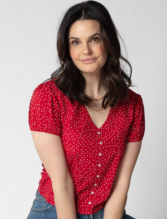 This polka dot blouse has everything to brighten up your look with elegance and ease.