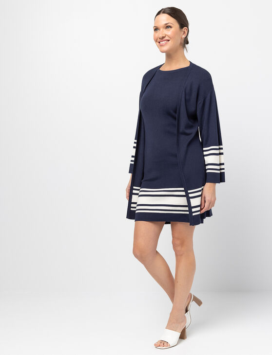 This 3/4-sleeve cardigan adds a light, elegant touch to your outfits with its subtle stripes. Easy to layer, it completes your look effortlessly, whether you're heading out or winding down.