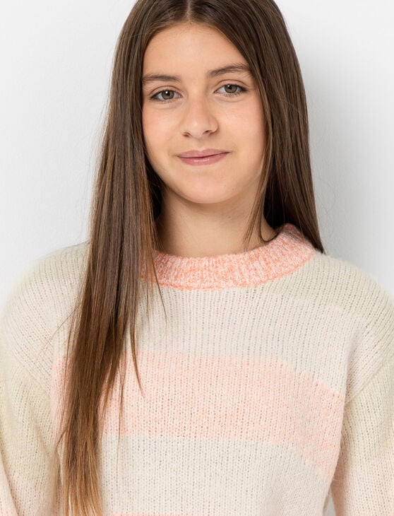 Soft as a cloud and perfect for cozy days, this pastel striped sweater brings a gentle touch to chilly moments.