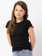 Comfy and stylish, this fitted t-shirt features a lettuce-edge finish at the sleeves and hem. A fresh take on a wardrobe staple, easy to pair with jeans, shorts, or relaxed pants.