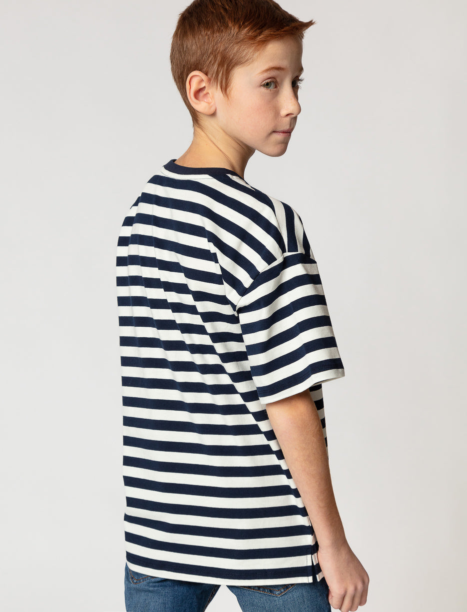 This striped t-shirt is a laid-back yet stylish choice for teen boys. Its relaxed fit and soft fabric make it perfect for casual days, while the nautical detail adds a unique touch.