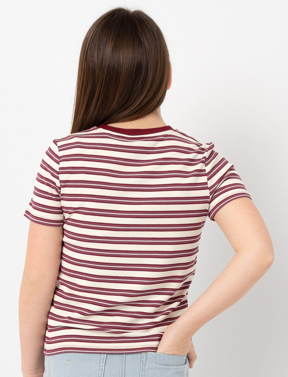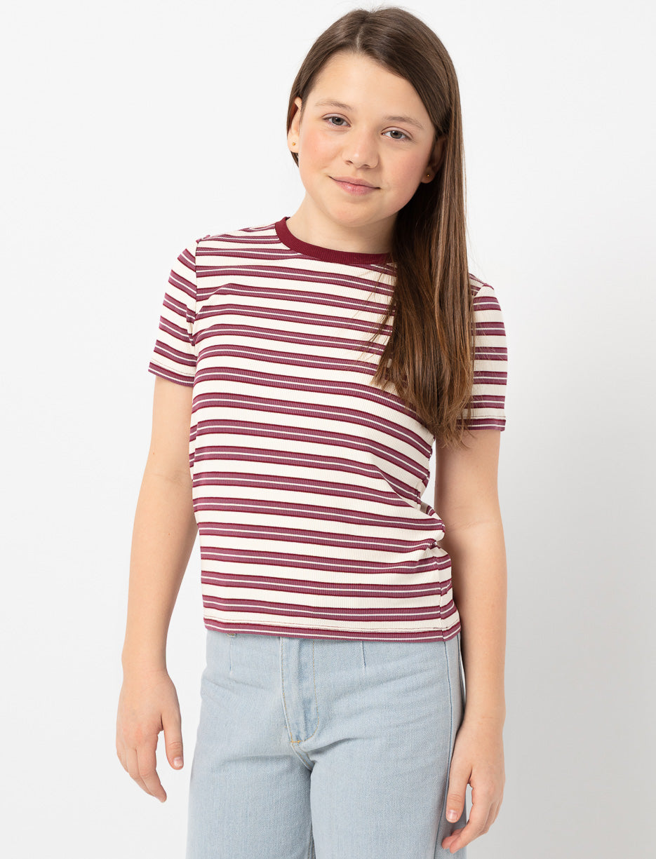 A t-shirt that keeps up with her busy days. Simple, comfy, and just right for all her favorite outfits.
