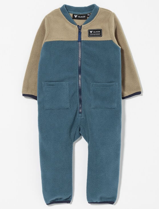 Designed to keep baby warm, this fleece romper offers softness, comfort, and room to move. Easy to put on with its zip up front, perfect for cooler days and cozy outings.