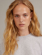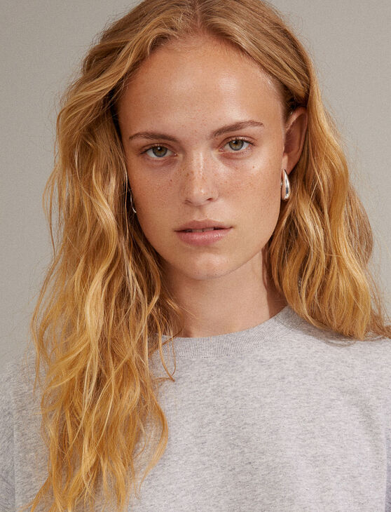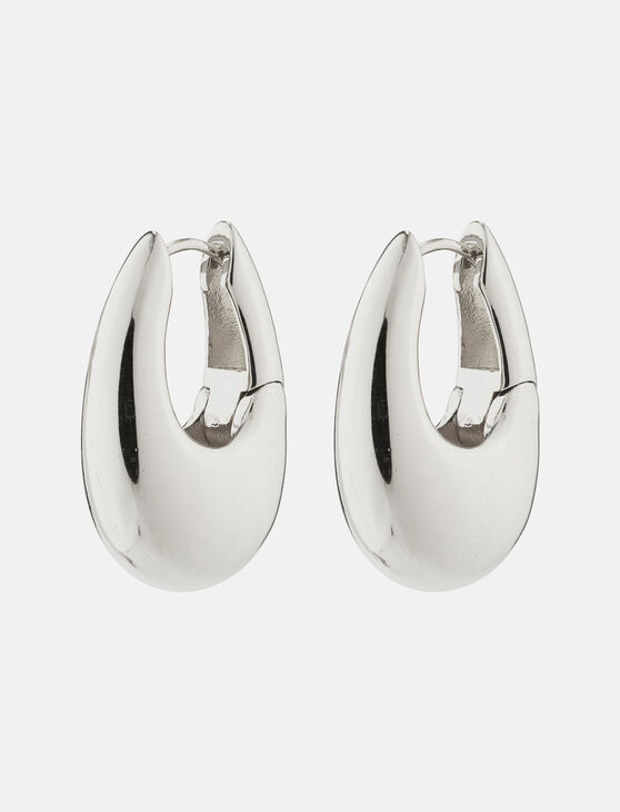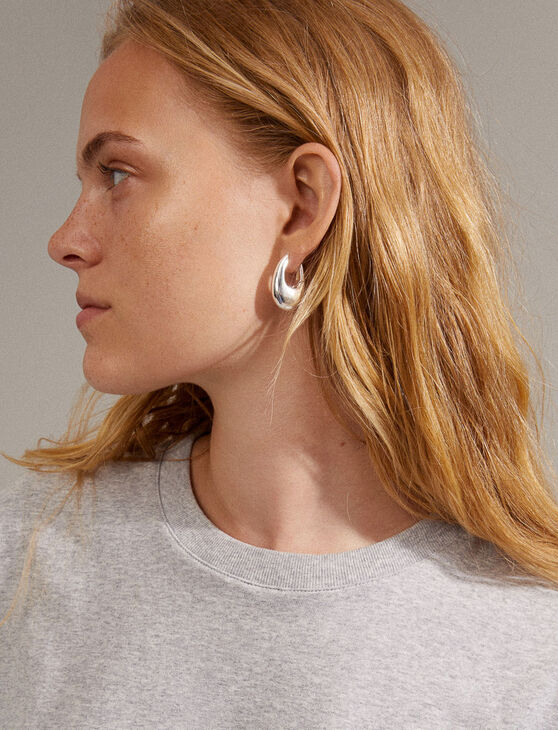 Minimalist drop-shaped hoop earrings with a polished finish. Their timeless design and bold look add character to everyday outfits, making them a modern and expressive must-have.