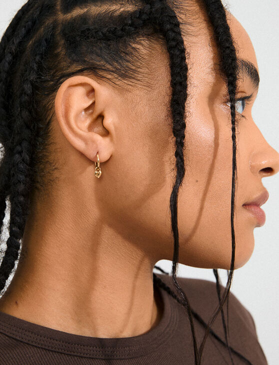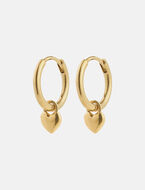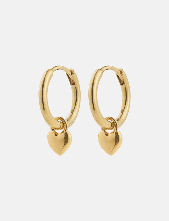 Gold or silver plated hoops with a removable heart pendant. Discreet size and modern romantic style, perfect for daily wear or special occasions. Made from 99% recycled materials. Gold version is water-resistant.