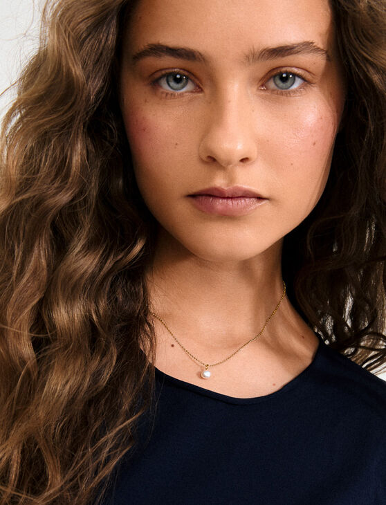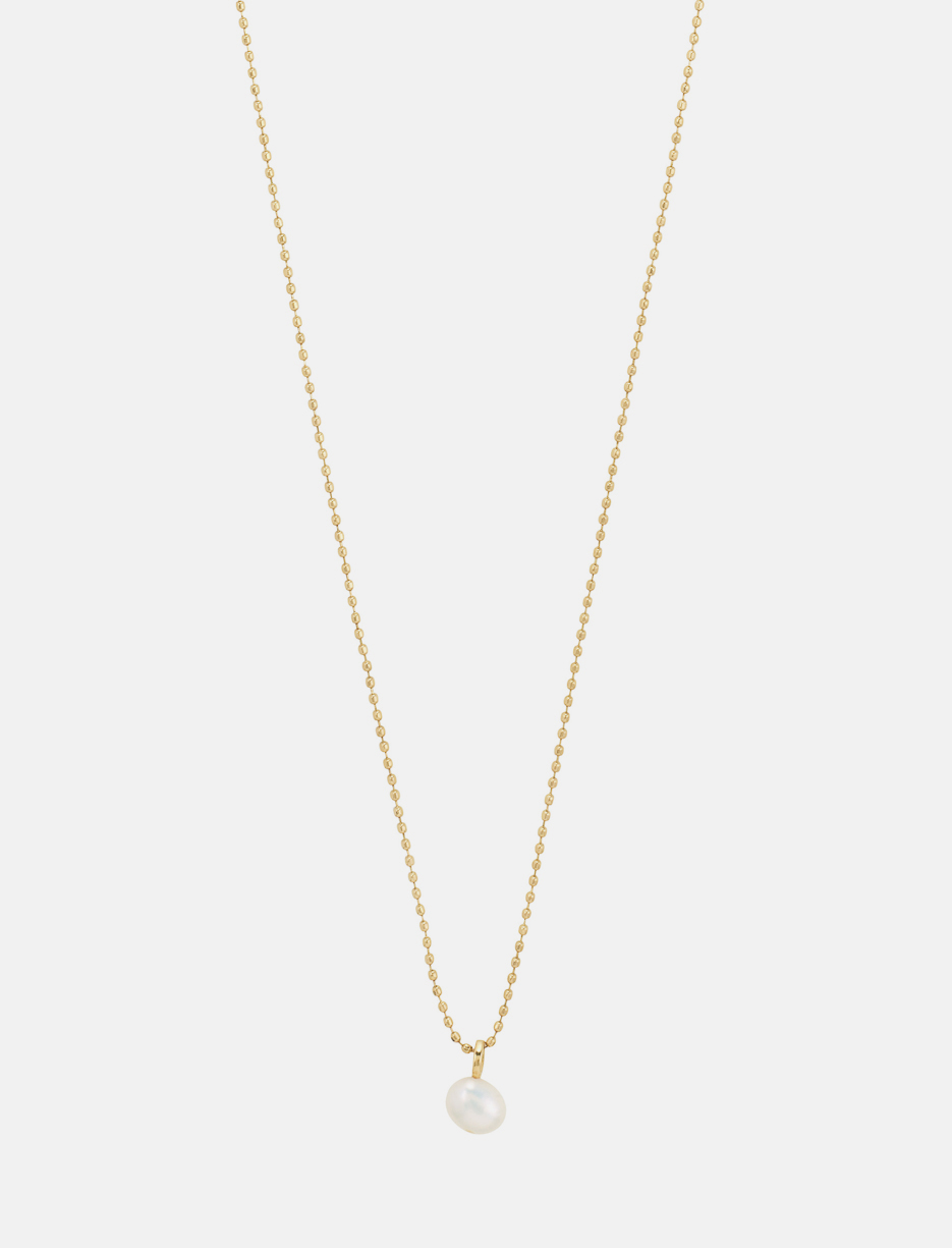 Timeless elegance! Gold or silver plated chain necklace with a genuine freshwater pearl. Length 40 cm with 9 cm extension. Made from 75% recycled materials for a refined and conscious style.