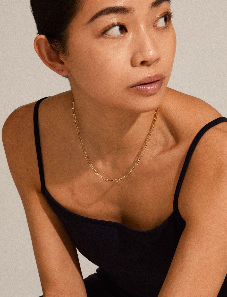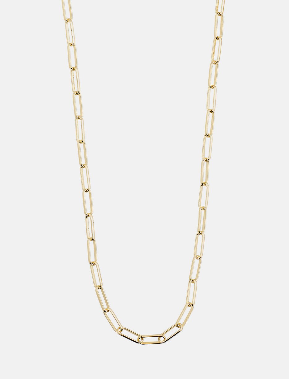 This gold or silver plated rectangular link necklace, crafted from recycled materials, captivates with its bold design. At 40 cm with a 9 cm extension, it layers elegantly with your favorite jewelry.