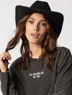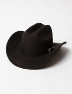Timeless western charm meets modern elegance in this cowboy hat. Crafted from soft felt, it features a sleek band with a silver buckle for a refined touch. Perfect for adding a bold statement to any outfit!