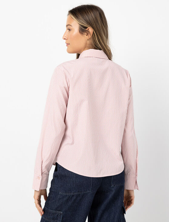 Plaid Blouse with Shirt collar and Front Tie Closures