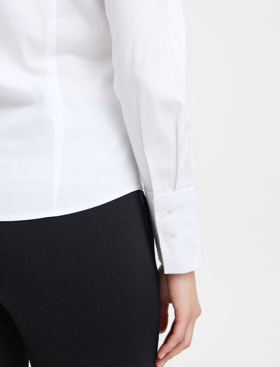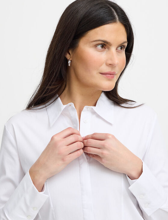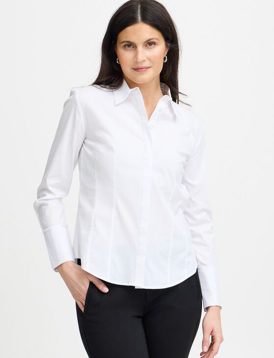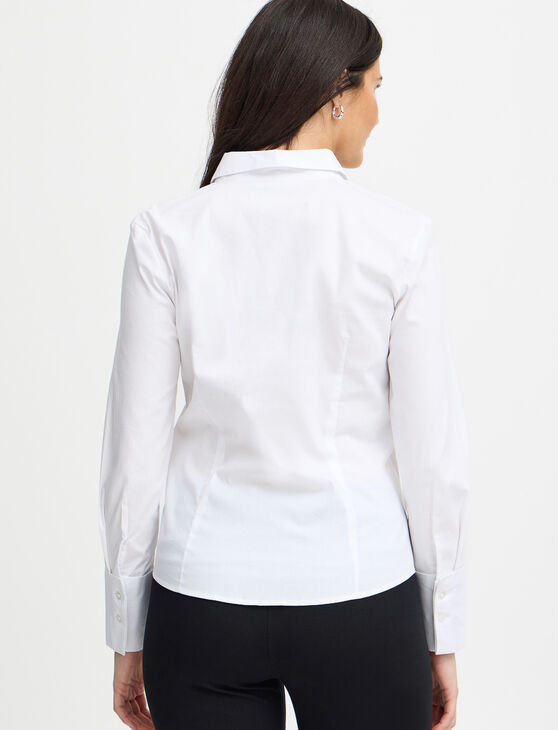 A timeless fitted shirt that enhances the figure. With its classic collar and clean design, it’s a wardrobe essential for busy days or professional outfits.