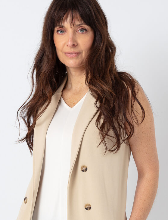 Polished and modern, this blazer is the perfect layering piece for a chic, structured look. Featuring a tailored fit, double-breasted button details, and convenient pockets, it adds effortless elegance to any outfit.