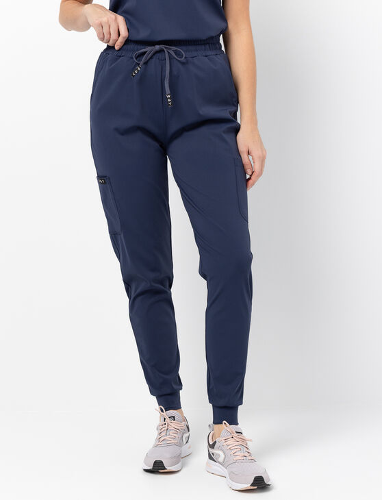 Designed for smooth movement at work, these stretch uniform pants feature an elastic drawstring waist, practical side pockets, and fitted ankles. Durable comfort and full mobility to support every active workday.