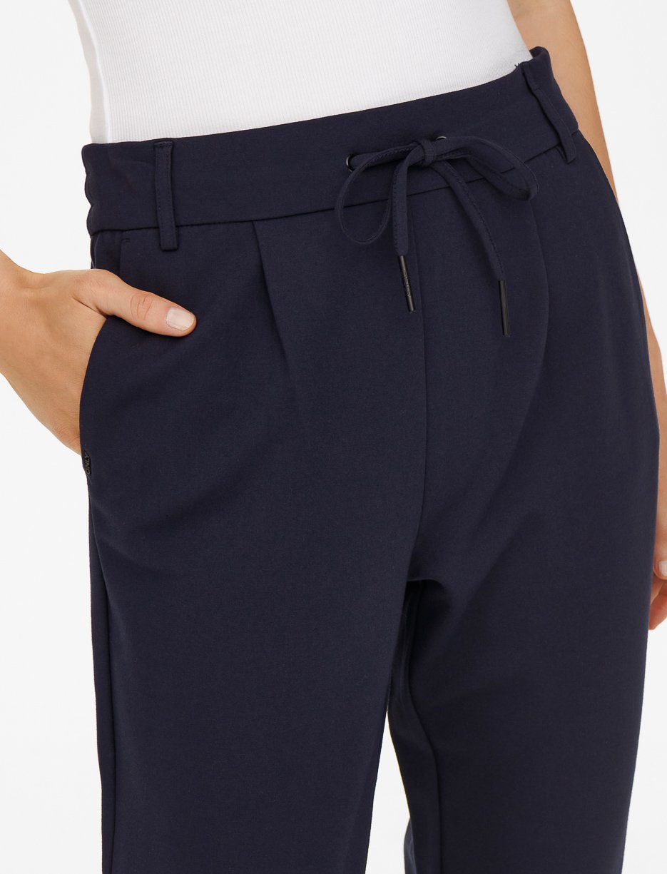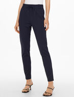 Practical pants with drawstring and elastic waist, featuring front pleats and pockets, ideal to combine comfort and casual style.
