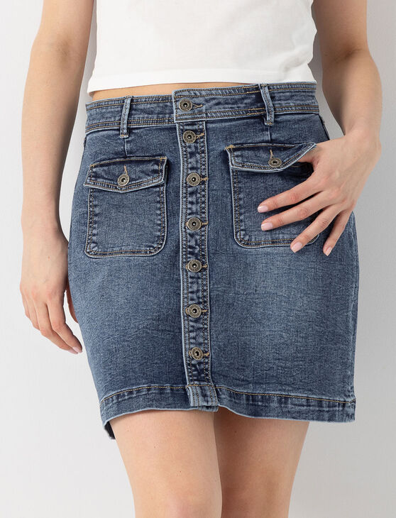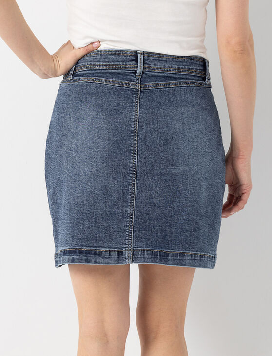 A classic with a retro twist! Easy to wear and always in style, this denim skirt adapts to any fashion mood.