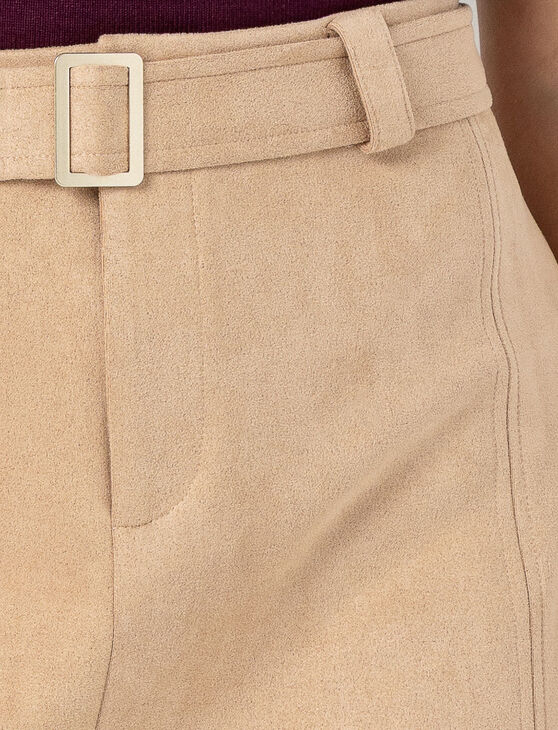 Embrace casual elegance with this suede skirt featuring a matching belt, ideal for finishing your fall-winter outfits.
