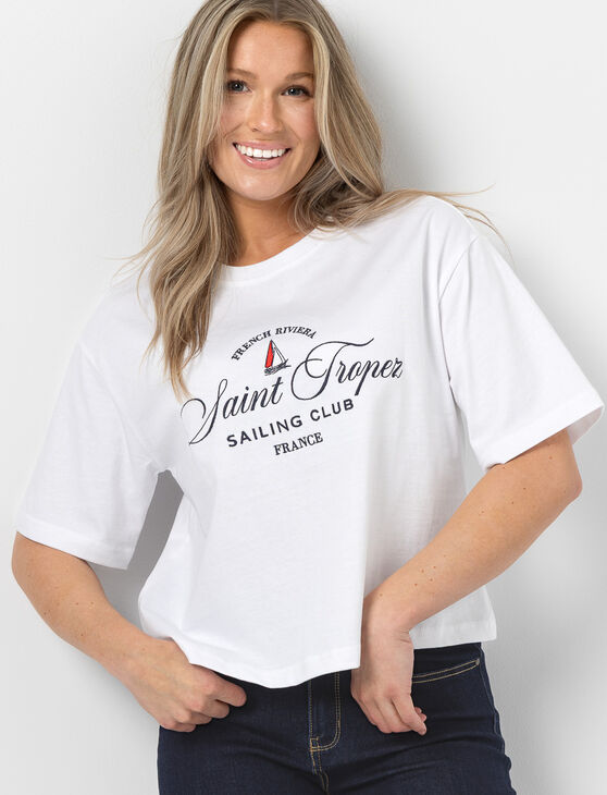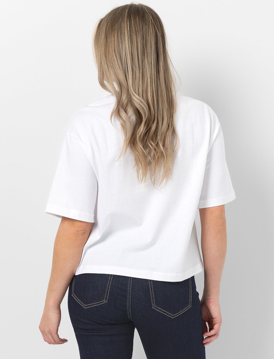 A boxy t-shirt that channels the relaxed feel of coastal getaways. Its easy fit and embossed print bring a simple, modern look with a hint of summer charm.