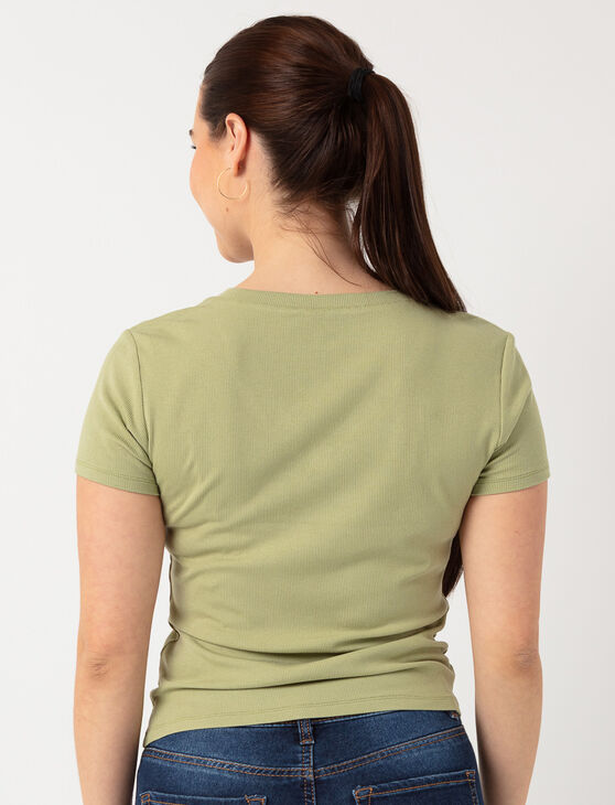 This fitted, ribbed V-neck t-shirt is the perfect basic to build your everyday outfits. Simple, comfortable, and always right.
