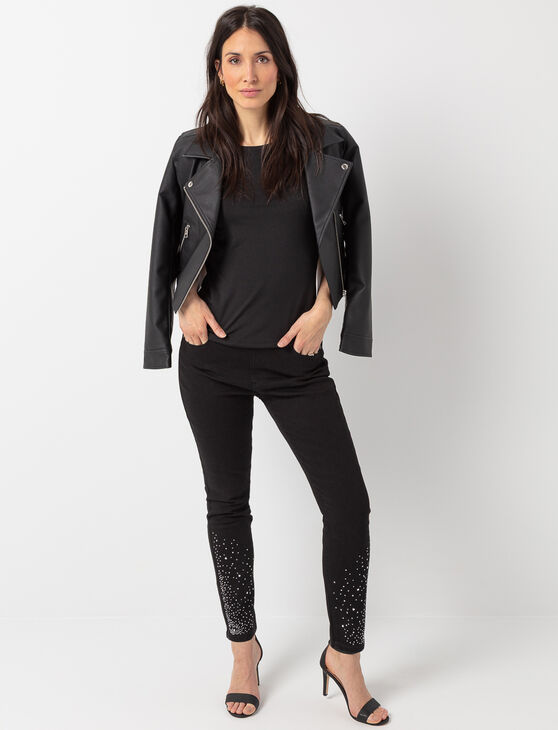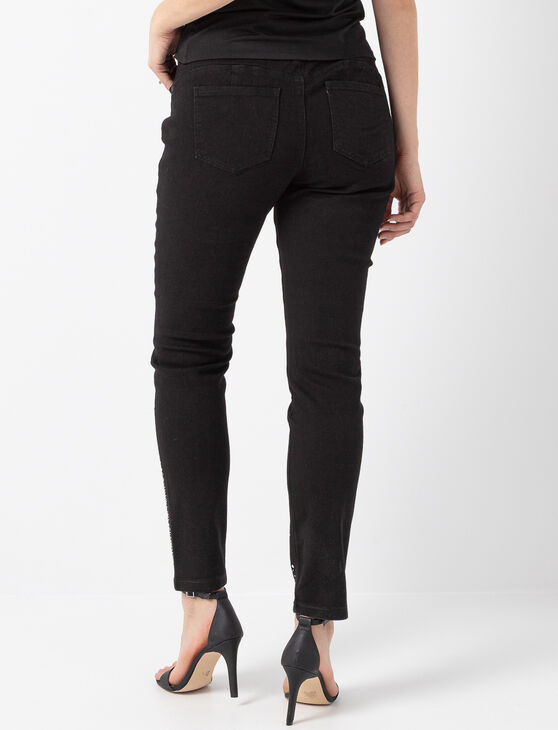 A jean that shines with originality! The sparkling detail at the hem adds the perfect touch of glam for a bold and chic style.