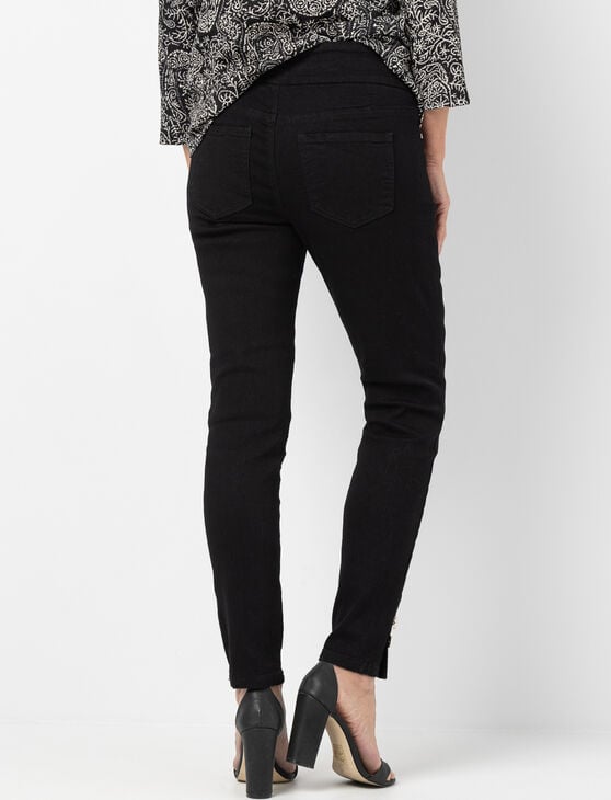Enjoy the comfort of stretchy pull-on pants that slip on in seconds, with the chic touch of decorative ankle buttons.