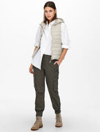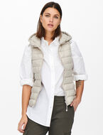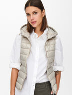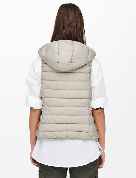 A hooded quilted vest, perfect for layering to add warmth and style to your mid-season outfits.