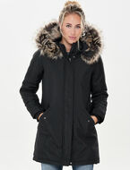 Designed for cold days, this coat offers comfort, warmth and protection. The faux fur-trimmed hood adds a cozy, stylish touch to a piece made for winter.