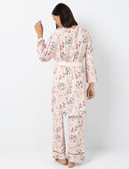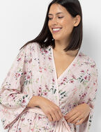 This soft, flowy bathrobe with long sleeves adds a touch of comfort to quiet mornings and cozy evenings. The self-tie belt and floral design bring ease and grace to your routine.