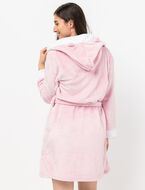 Wrap yourself in softness with this long hooded bathrobe. Its plush fabric and decorative pockets bring comfort and charm, perfect for cozy and relaxing moments.