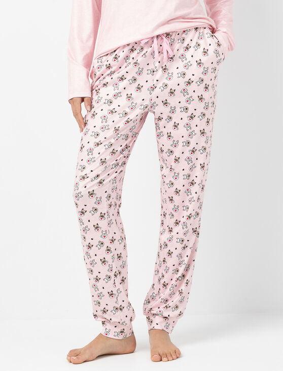 Relax in style with these jogger pajama pants featuring an adjustable drawstring and elastic cuffs for cozy all-night comfort.
