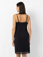 Fall for the softness and elegance of this nightdress with delicate lace trim. Featuring thin straps and a fluid fabric, it promises comfortable nights with a touch of refined style.