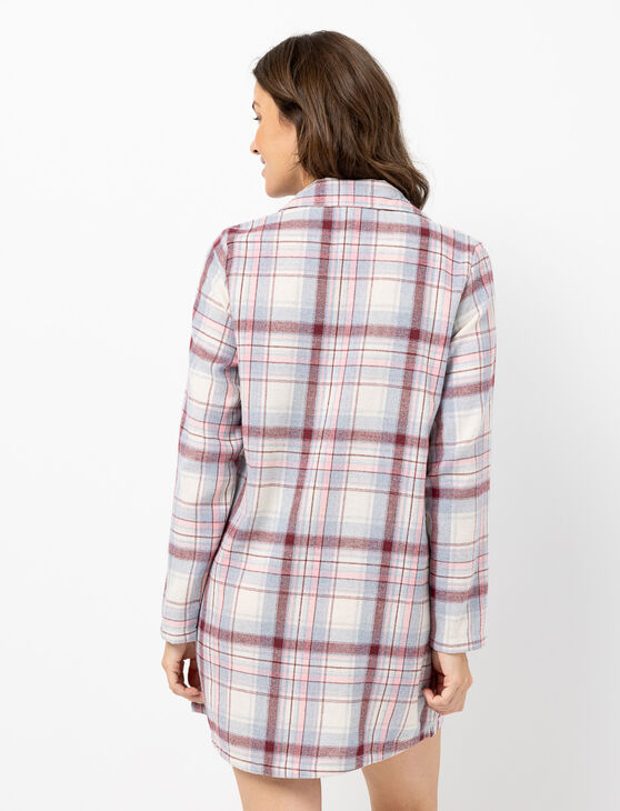 Wrap yourself in comfort with this plaid nightshirt. Its long cut and long sleeves keep you warm and cozy, making your nights as stylish as they are restful.