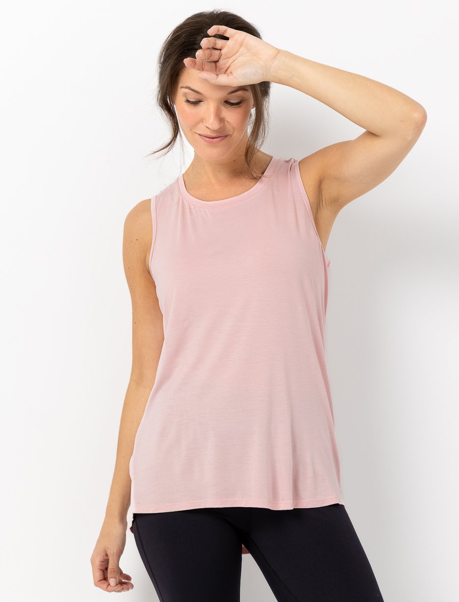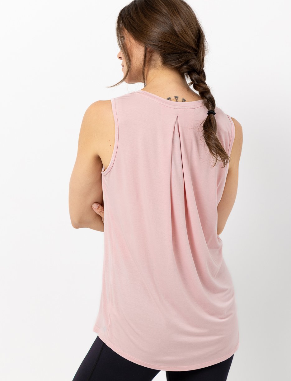 This sleeveless round neck tank top offers everyday comfort and effortless style. Made from soft, stretchy jersey fabric, it moves with you, while the back pleat adds a subtle feminine touch.