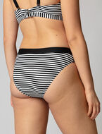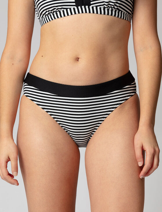 Sleek and flattering, this bikini bottom offers a timeless stripe design paired with a solid waistband for extra style. It's an ideal choice for both active beach days and relaxing poolside.