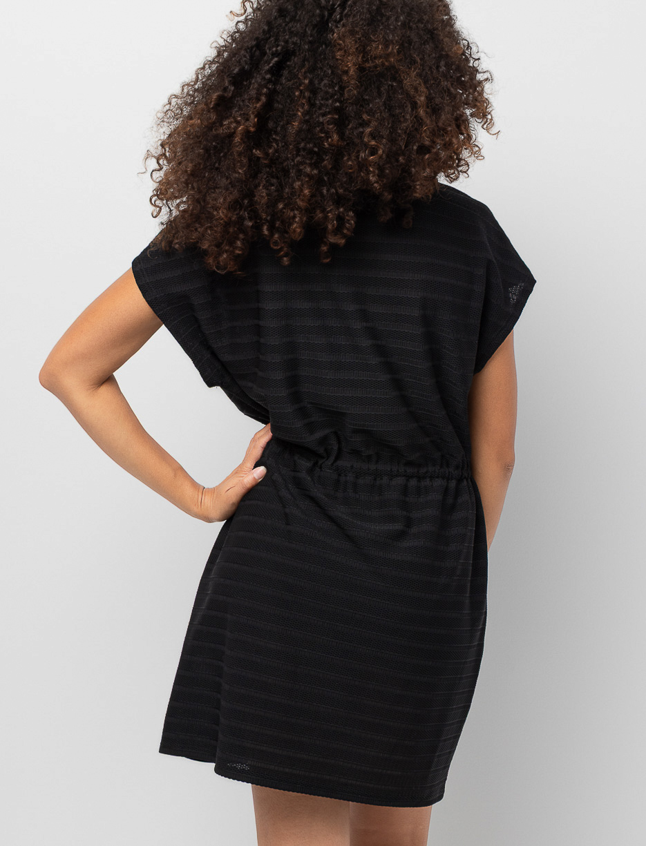 Slip into this swimsuit cover-up dress that blends lightness and ease. Its cinched waist and striped mesh give you a relaxed, effortless look made for stretching out those perfect beach-day moments.
